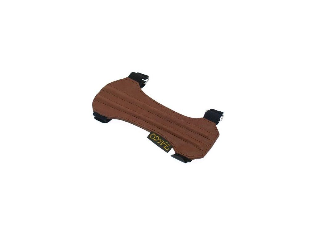 Chránič FALCO G203 z kože na ochranu ruky pred tetivou so zapínaním na suchý zips a gumičkové sťahovanie.