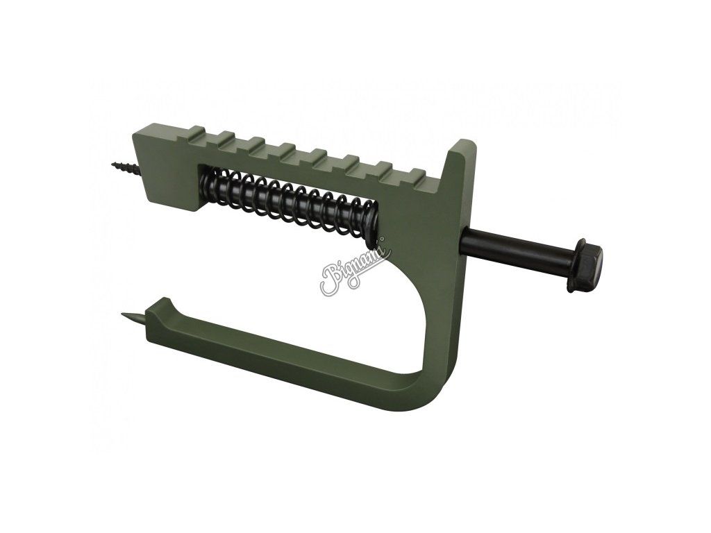 Pevné a odolné stupačky z duralu v olivovej farbe, ktoré sa do stromu našróbujú pomocou kľúča (nie je súčasťou).