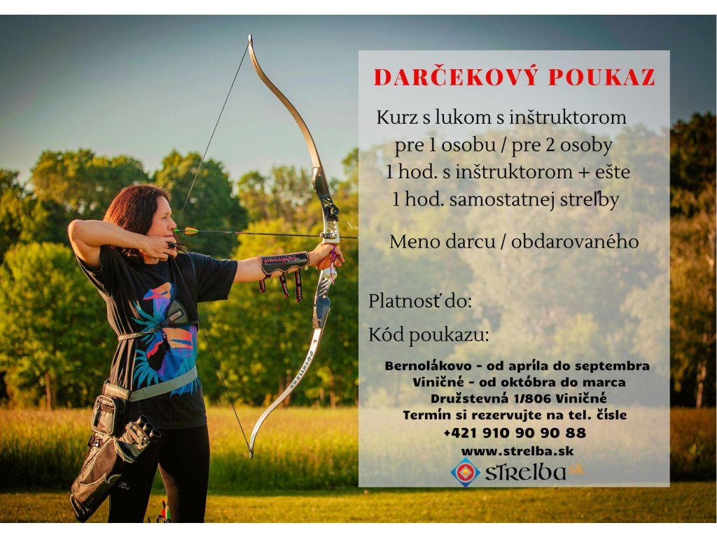 Záujemcom o jednorazový kurz lukostreľby v trvaní od 1,5 do 2 hodín (podľa typu kurzu a produktu) ponúkame možnosť obdarovať svojho blízkeho darčekovým poukazom. Ďarčekový poukaz je vystavený na meno a je prenosný na inú osobu len v prípade, že objednávateľ poukazu písomne požiada poskytovateľa služby (Lukostrelecký klub ELÁN) o zmenu obdarovaného pred uplynutím doby platnosti poukazu.