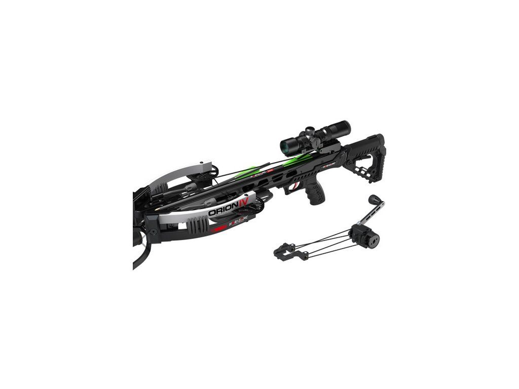 Vysoko výkonná veľmi kompatná kladková kuša HORI ZONE ORION IV, najrýchlejšia z kuší HORI ZONE určená na presnú a účinnú loveckú streľbu aj terčovú presnú streľbu s teleskopickou pažbou v sete a nastaviteľným predným predpažbím. Súčasťou setu sú 3 karb. šípy dĺžky 20´´, držiak na šípy, podsvietená optika 4x32, picatinny predná pažba, tlmiče vibrácií a hluku, naťahovač a vosk na koľajnicu a kovový kľukový naťahovač na ľahké napnutie tetivy (zvládne to aj žena). Súčasťou je aj anti-dryfire systém proti výstrelu bez šípu a zničením kuše.Vhodná kuša na vážny lov aj rekreačnú streľbu do terča aj na 100 m. Káble a tetivy sú bežne dostupné. Možnosť po predaji u nás kušu aj zastrieľať, pomôžeme Vám ju nastaviť a dostanete kompletné poradenstvo k používaniu, aj pri diaľkovom nákupe.