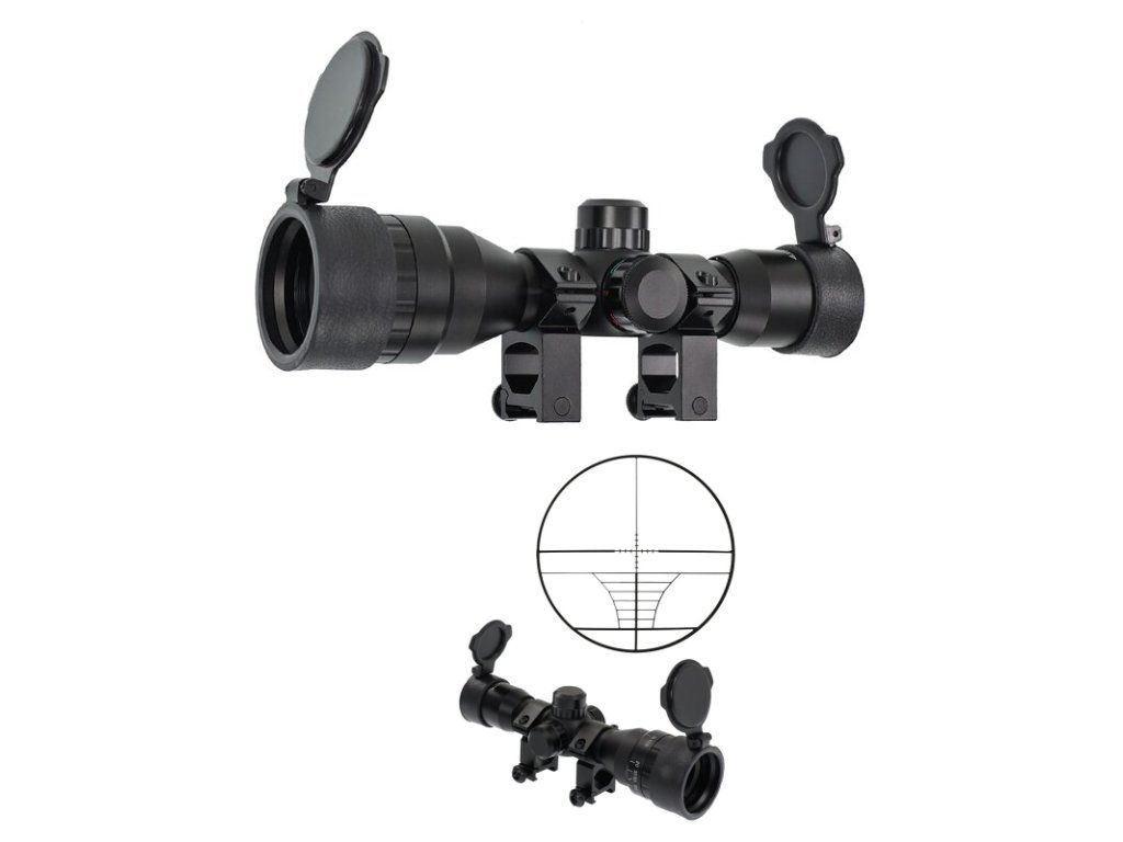 Optický približovací ďalekohľad na kuše X-scope FMA 4x32 s podsvietením, multikrížom, objímkami (8001)