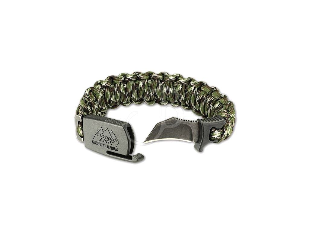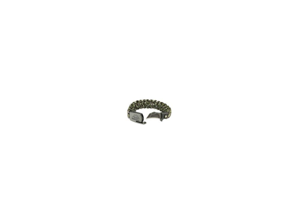 Paracord remienok s nožom Boeker paraclaw woodland náramok na prežitie camo farby. Outdoor survival paracord Boeker para-claw.