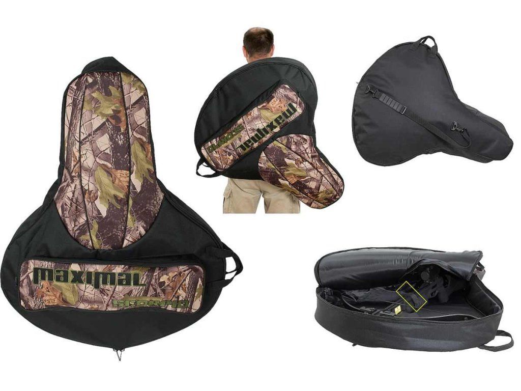 Kompaktná dobre vypolstrovaná taška Maximal Scorpio na kladkové kuše v čierno maskáčovej farbe s horným vreckom na šípy, popruhom na nosenie. Univerzálna taška vhodná pre väčšinu kladkových kuší na trhu.