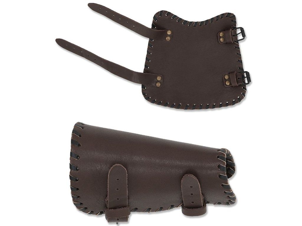 Tradičný kožený chránič Bucktrail s prackami na tradičnú lukostreľbu hnedej olejovej farby.