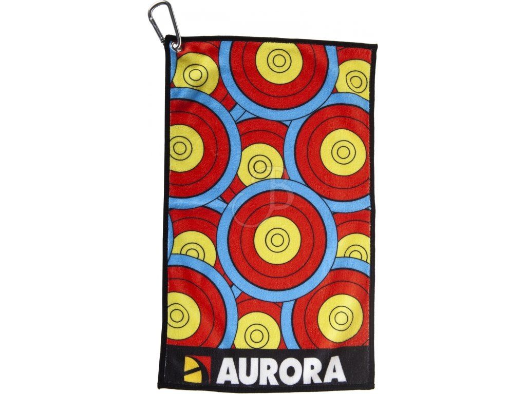 Dizajnový uteráčik na utretie rúk počas streľby Aurora. Uterák Aurora sa pripevňuje o karabínu k tulcu.