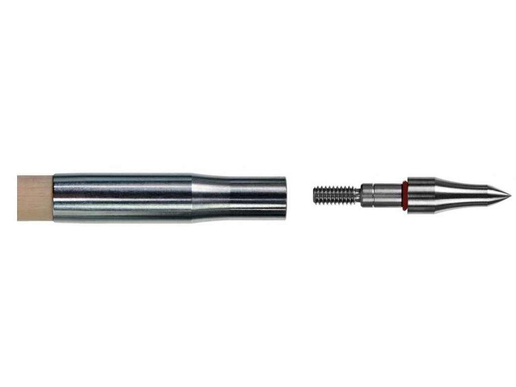 Oceľový adaptér, ktorý sa prilepí na drevený šíp a je možnosť tak vybaviť šíp šróbovacím hrotom, prípadne loveckým hrotom. Cena je za 1 ks