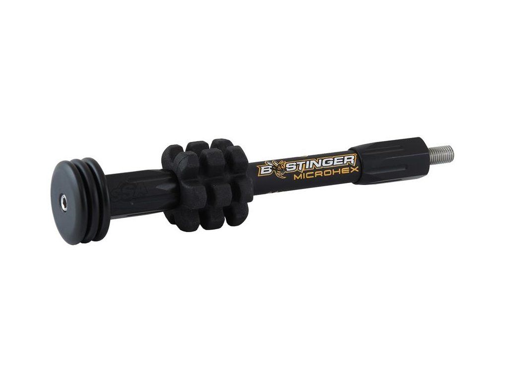 B-stinger microhex hunting stabiliser lovecký stabilizátor 6´´ čierny, efektívny lovecký stabilizátor B stinger s gumovými tlmičmi a závažím na konci s možnosťou pridať ďalšie.