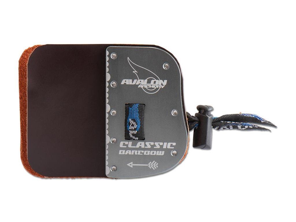 Avalon classic barebow tab je dostupná a dobrá tabka z kože a kovového plechu na barebow streľbu so značkami pre lepší odhad odsadenia prstov od tetivy (string walking)