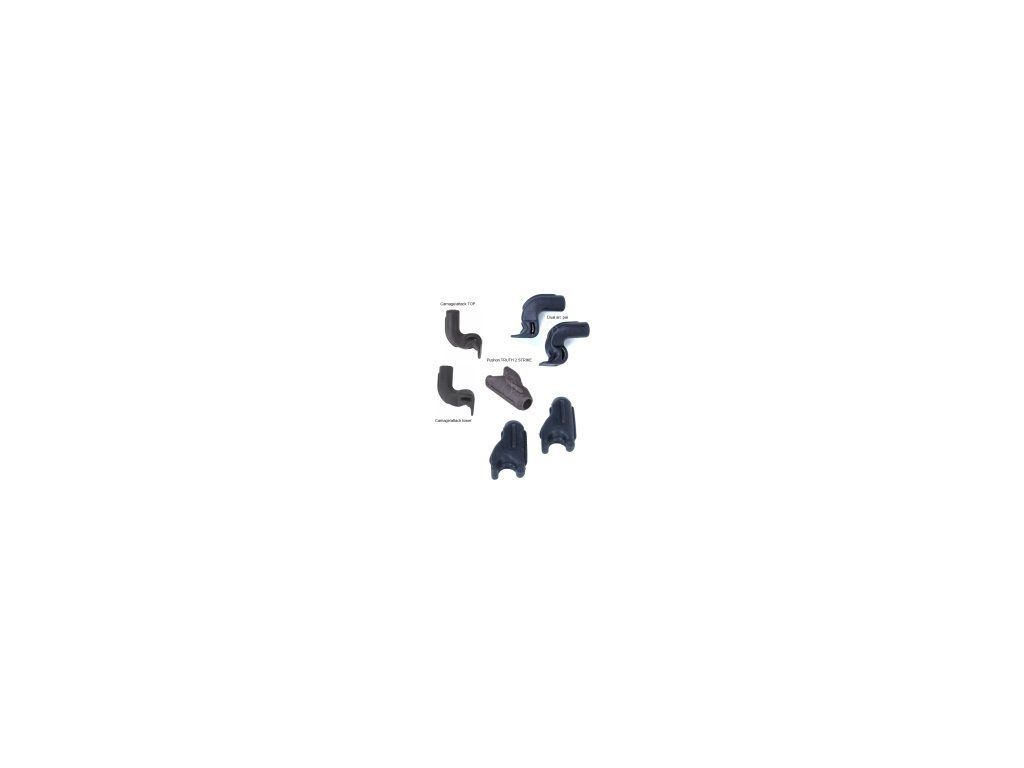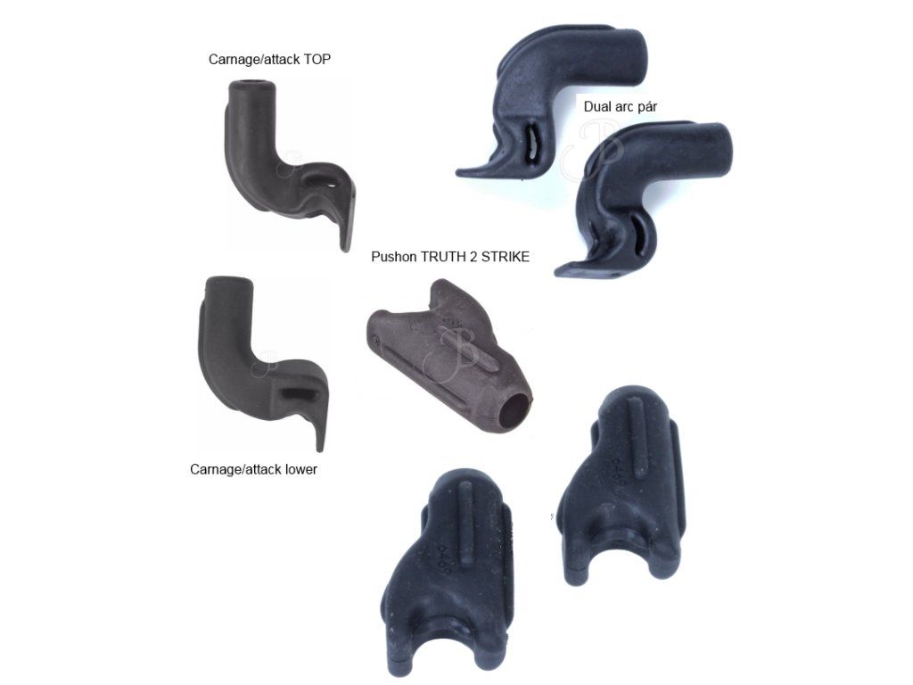 Gumové dorazové gumy (dampery) na kladkové luky BEAR v páre, ktoré sú vyvedené z dorazovej tyče, ktorá nie je kolmá na tetivu u niektorých modelov, privádza gumy dvojitým zahnutím ku tetive.
