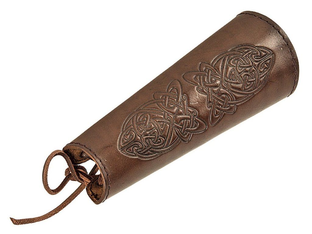 Exkluzívny chránič pre tradičných lukostrelcov z kože s keltským vypaľovaným vzorom na šnurovanie Eltoro PRIME Celtic armguard.