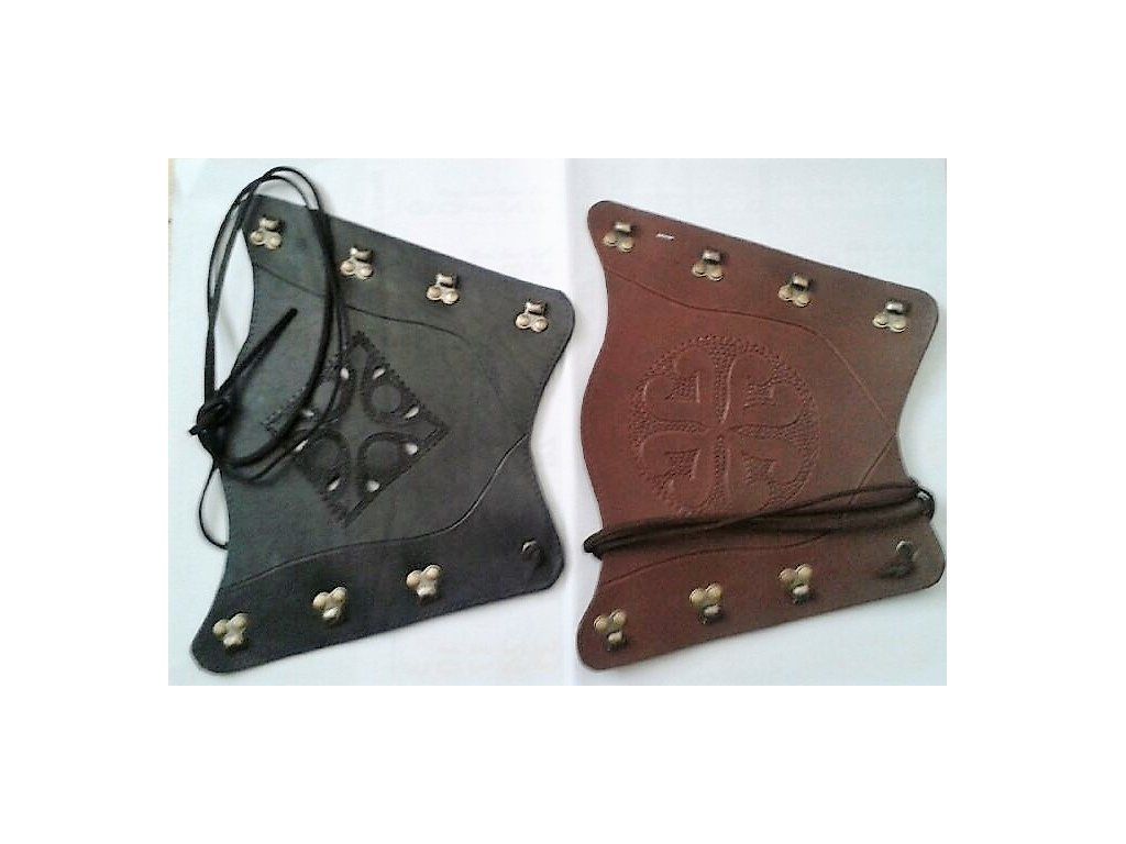 Tradičný chránič šnurovací z pevnej kvalitnej kože ručne robený s ozdobným motívom.