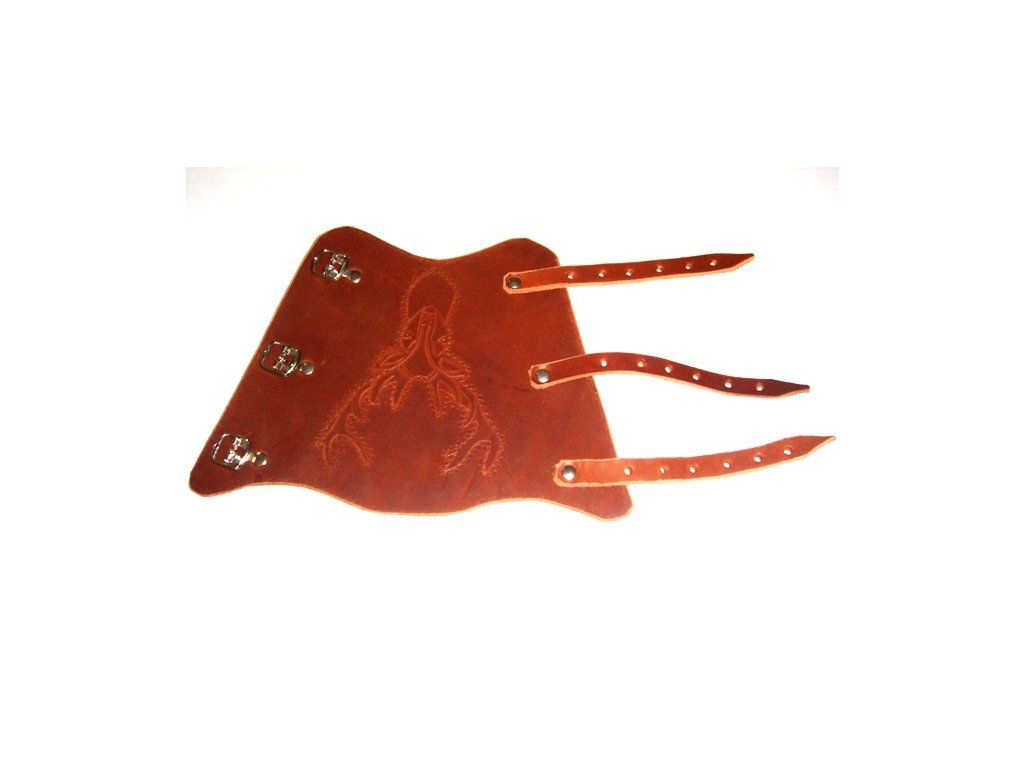 Veľmi pevný prackový chránič s dierovaným dizajnom (obrázok jeleňa) z pevnej hrubej kože určený pre tradičných lukostrelcov.
