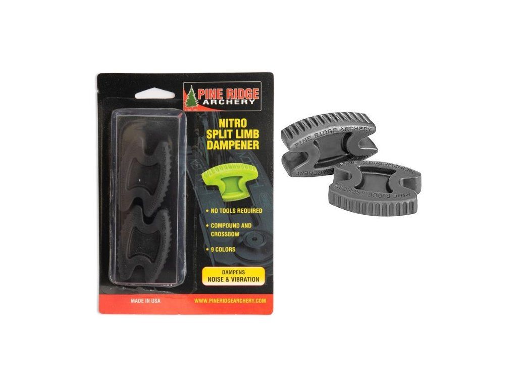 Damper na kladkové luky delené ramená Pine ridge Nitro split limb damper s ľahkou inštaláciou a výdržou. Tlmí hluk aj vibrácie. Skladom čierne, k dispozícii aj iné farby na objednávku.Cena je za 2 ks. Použitie aj pre kladkové kuše.