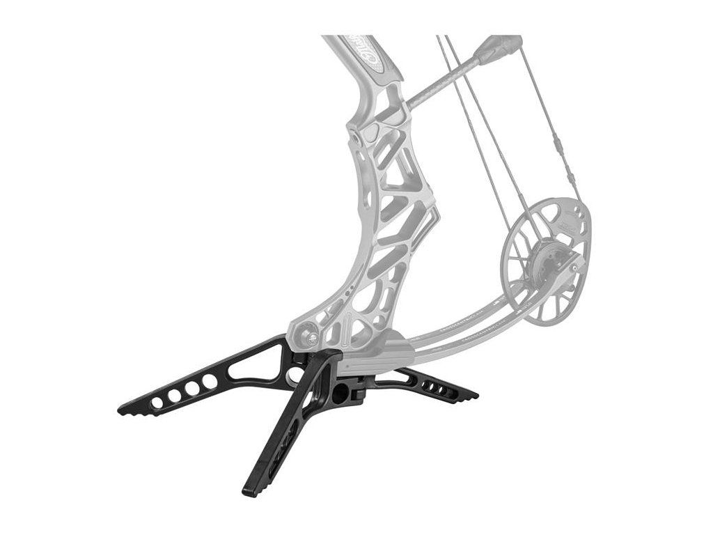 Držiak/stojan na kladkový luk MATHEWS ENGAGE limb leg bowstand, ktorý možno osadiť na luky MATHEWS s úzkymi ramenami. Má tri nohy a dobre drží luk, netreba na opretie iný stabilizátor.