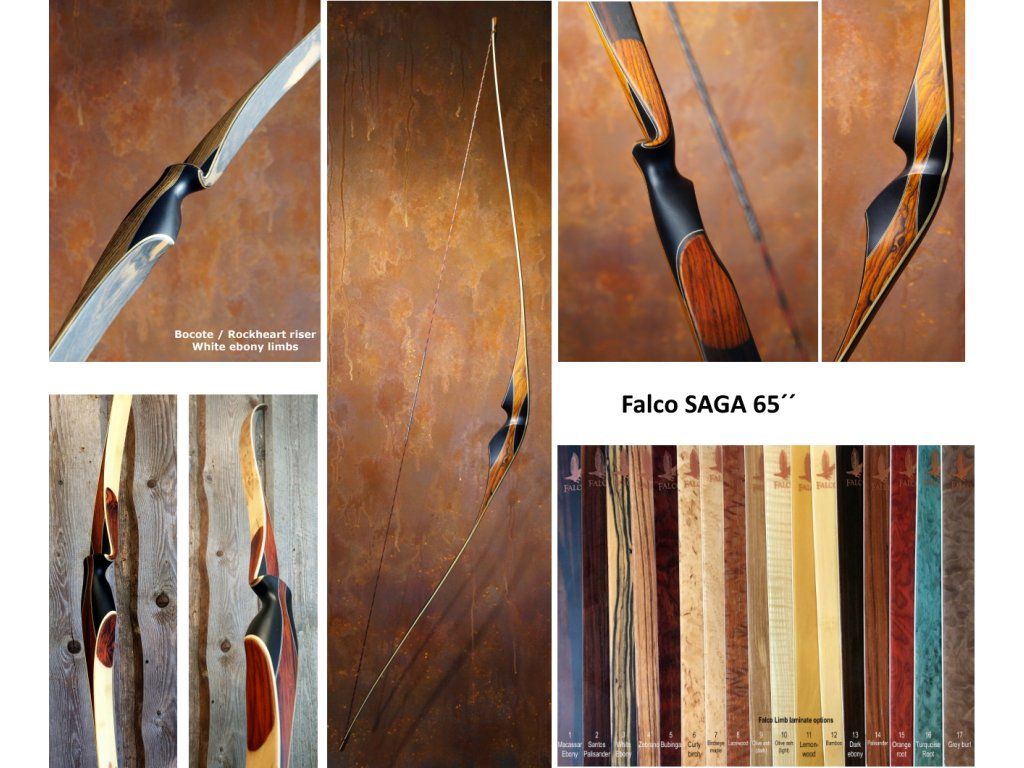 Nový špičkový súťažný superrýchly longbow Falco Saga na súťažnú 3D lukostreľbu pre najnáročnejších fanúšikov tradičných lukov s karbónovou vrstvou , ďalšou vrstvou diamond carbon a bambusovým jadrom. Falco Saga longbow z Estónska porovnateľný s americkými lukmi BEAR, dovolím si povedať,že ich v niektorých vlastnostiach i prevyšuje, každý jeden je ručne a starostlivo vyrábaný, priebeh náťahu je vľmi príjemný a rýchlosť je najvyššia spomedzi všetkých modelov Falco. Súčasťou je rockheart jadro a vysoký pištoľový úchop,ktorý drží luku v relaxovanej a stabilnej polohe. Na výber možné rôzne použitie dreva ako je to na zväčšenom obrázku, možnosť si navoliť luk, po ktorom snívate. Je vyrobený ako top luk pre WA v divízii longbow. V IFAA a NFAA nie je ako longbow povolený (može sa s ním pretekať len ako s TRRB)