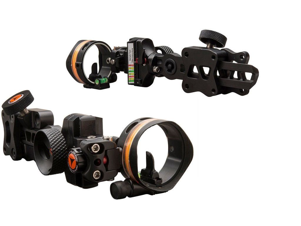 Výborný súťažný a lovecký zameriavač s rheostatovým svetlom a jemným nastavením strany aj výšky druhá a tretia os APEX GEAR COVERT 1 micro Versa, zastavuje pri posunoch mieridla na voliteľných blokoch, čím je zmena zámerného pinu vždy rovnako presná. V balení zameriavaču je voliteľná veľkosť pinu medzi .019 a .010. a takisto je voliteľná aj farba pinu. Výdrž batérie je 700 hodín.