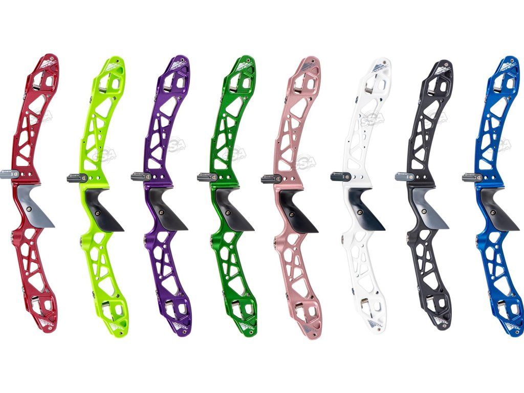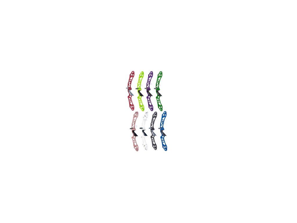 A uniquely designed, wrought solid center with a reflective bow Kinetic NOVANA for juniors, women, and men, featuring a shorter draw weight up to 36 lbs and enthusiasts of competitive sporting bows in a low price category, also suitable for more serious competitions, vibrationally and stabilizably improved center, ILF-style riser compatible with all brands. The bow is suitable for competition, with the option to adjust the limb deflection and installation of all necessary accessories. The grip is made of black plastic, well-shaped, with adjustable limbs. V1 and V2 versions do not differ in design.