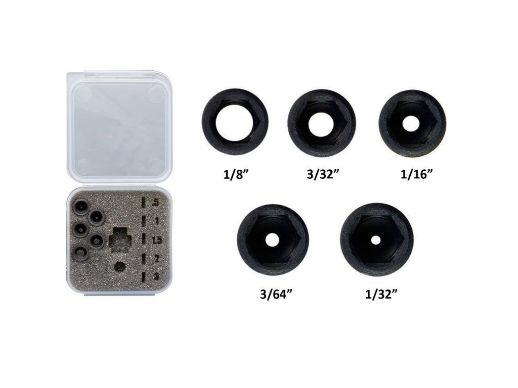 Veľkosť priezoru je: 1/32″, 3/64″, 1/16″, 3/32″ and 1/8″