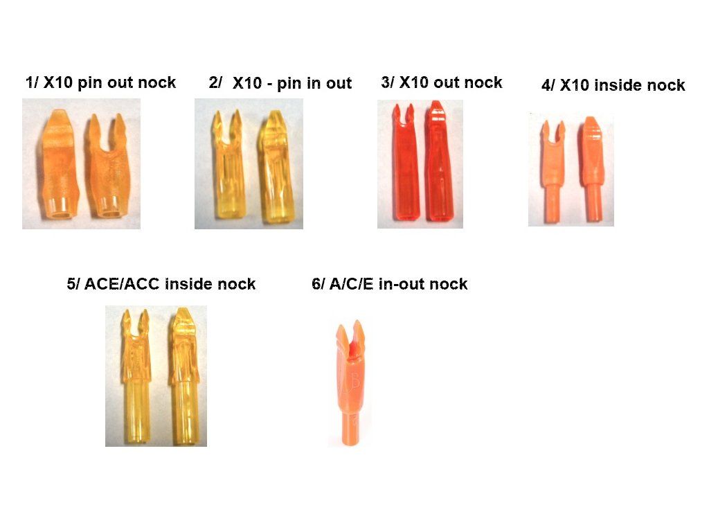 6/ ACE in-out nock heavy (insertný prečnievajúci) SMALL/LARGE (žltý a oranžový skladom) 1,50 Eur/ks (min. 6 ks)