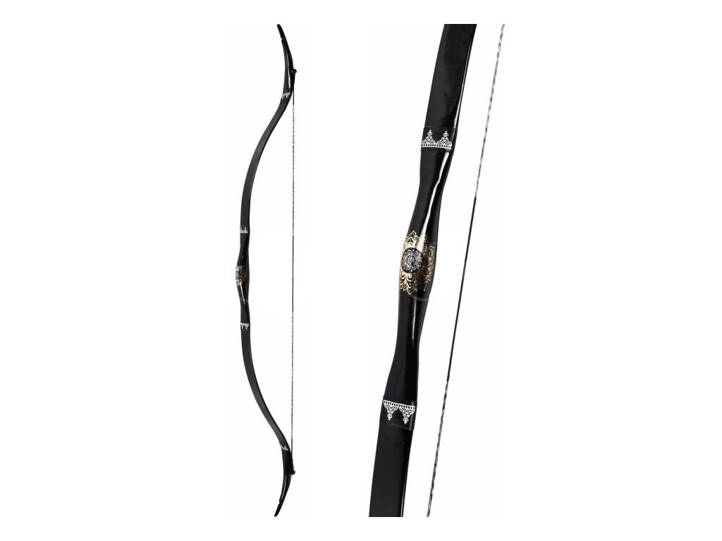 Turecký ornamentovaný luk pre dospelých z dreva s krásnym čierno-strieborným dizajnom a jemným náťahom. Luk má celodrevené telo aj ramená, potiahnuté laminátom, s lesklým povrchom. Vhodne zapracované ornamenty, možnosť streľby aj pre praváka aj ľaváka. Mäkké naťahovanie a dopínanie aj pri plnom náťahu.