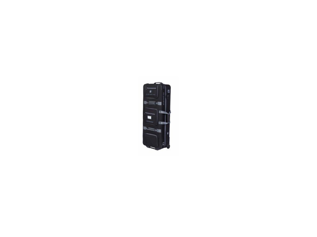 Large travel case for recurve bows made of textile with wheels in two sizes for target recurve bows Legend EVEREST Trolley 2024. It can accommodate complete accessories, has multiple pockets, and can be pulled along on wheels or carried on a shoulder strap.