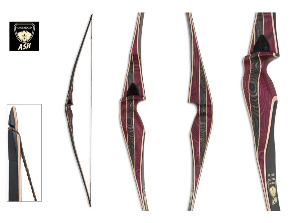 Hybridný luk Oak ridge Ash 64´´ je tradičný luk niečo medzi longbow a loveckým lukom, možnosť súťažiť v kategórii longbow aj TRRB (tradičný reflexný luk). Luk nemá hlboko reflexné ramená, ale reflex je už pomerne výrazný, takže oficiálne sa do kategórie longbow už nezmestí. Má výborne tvarovanú rúčku, ktorá podporuje stabilitu, príjemne mäkučký luk počas celého náťahu. Celodrevený luk s laminátom v ramenách s dyneema rýchlou flámskou tetivou (v cene), aj výstelkou na šíp. V menších silách vhodný aj pre juniorov a ženy. Vhodný luk aj pre strelcov s dlhými náťahmi. Odporúčame najmä so šípmi AVALON CLASSIC s prírodnými letkami, prípadne s EASTON Tribute duralovými šípami s prír. letkami alebo hnedými karbónovými šípami Bucktrail /Outback Timber s prírodnými letkami. Veľmi príjemný, presný a dizajnovo pekný luk, dlhšie skúsenosti s predajom, odporúčame ho pre rekreačnú streľbu no rovnako aj vhodný a presný luk aj na súťaženie v 3D lukostreľbe. Často nakupovaný luk ženami, kvôli skutočne peknému dizajnu tmavočervenej a čiernej kombinácie dreva.