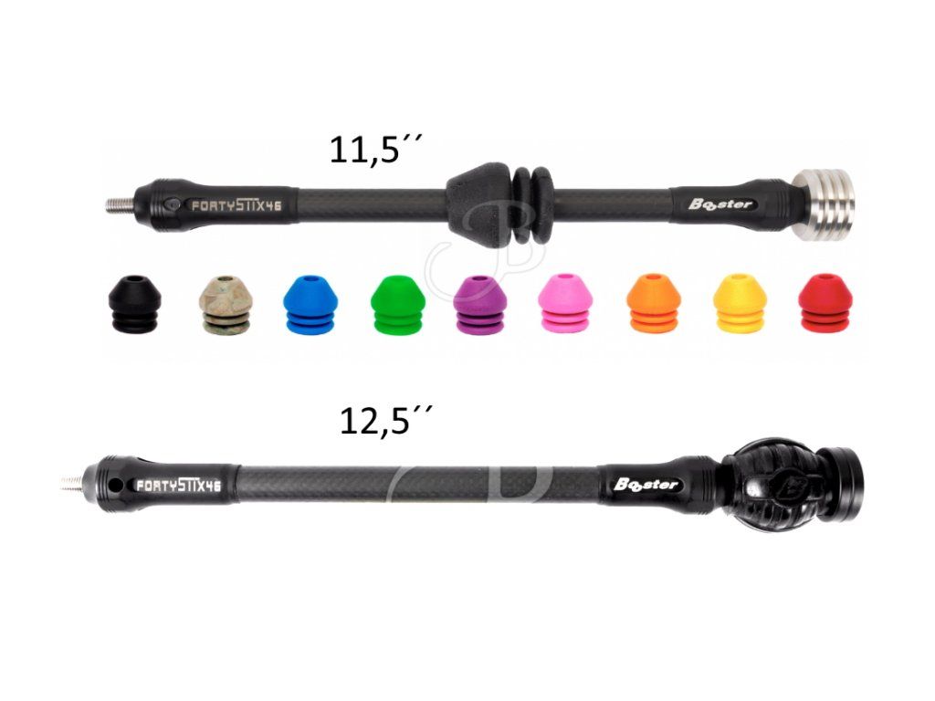 Lovecké karbónové stabilizátory FORTY SIX vhodné na lov aj 3D súťaže s gumou a závažím. Možnosť gumového dampera viacerých farebných variácií v prípade 11.5´´ stabilizátora. Vhodné aj ako bočný stabiulizátor na kladkové luky.