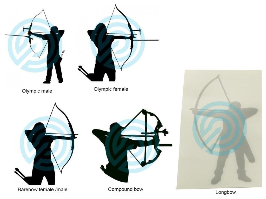 Stickers of various archery disciplines, archer stickers and archerette stickers, for example, on a car:
