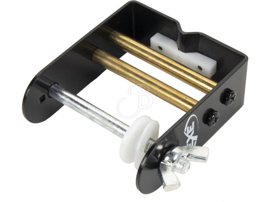 Simple device for wrapping string - EXE string server serves to winding the string spool onto the string center or when repairing strings, the frame is made of black metal.