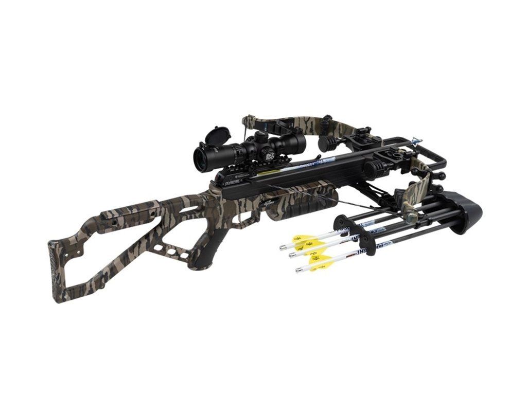 The EXCALIBUR EXCALIBUR Extreme micro 360 fps bottomlands recurve bow is a guarantee of performance, reliability, and safety, equipped with a backlit excalibur tact100 scope sight, a hunting arrow rest, and 4 carbon arrows, with limb rests and rubber dampers on the arms, equipped with a dryfire system ceasefire system, meaning the bow will not fire without an arrow lying down, plus a puller string. The bow is suitable for hunting animals with sufficient speed as well as medium and large animals and for precise target shooting up to 100m. An advantage is the smaller pulling force, which is sufficient for hunting any animal in the northern hemisphere, with hunting effective range up to 50m, limited by the scope of hunting arrows on a longer distance. The recurve bow is gentle on the tension and arm strain of the bow compared to piston bows it has a longer lifespan. Theoretically, a strong person can even pull it back without a puller string (about 66 kg dead pull). It is possible to order a crankshaft external puller string with it, which makes pulling the bow literally easy, without effort (15 lbs), although it is slower.