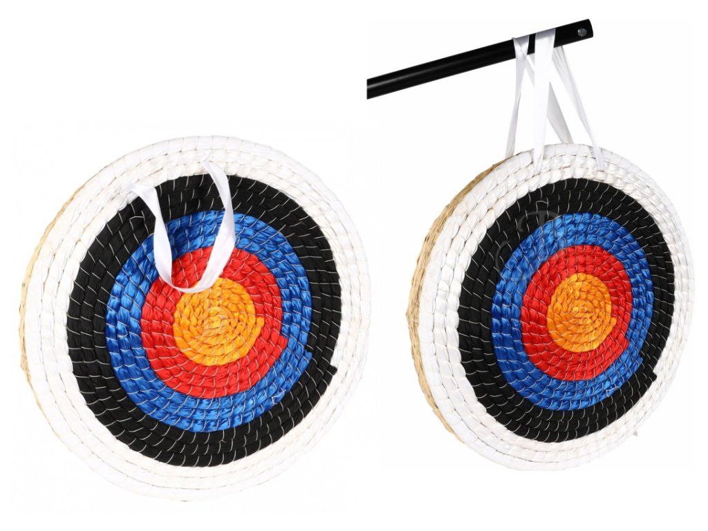 Slamený terč priemeru 50 cm a hrúbkou 5-7 cm na rekreačnú streľbu pre luky do 30 lbs s terčom. súčasťou je závesný remeň.