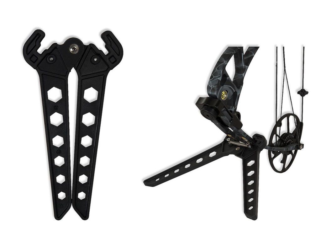 Jednoduchý skladací ekonomický stojan na kladkové luky AVALON TPE pro pod. Je len potrebné mať dlhý centrálny stabilizátor aby sa luk opieral, bez dlhšieho stabilizátora nevie stáť (min 10´´). Upevňuje sa na ramená luku, zväčša delené.