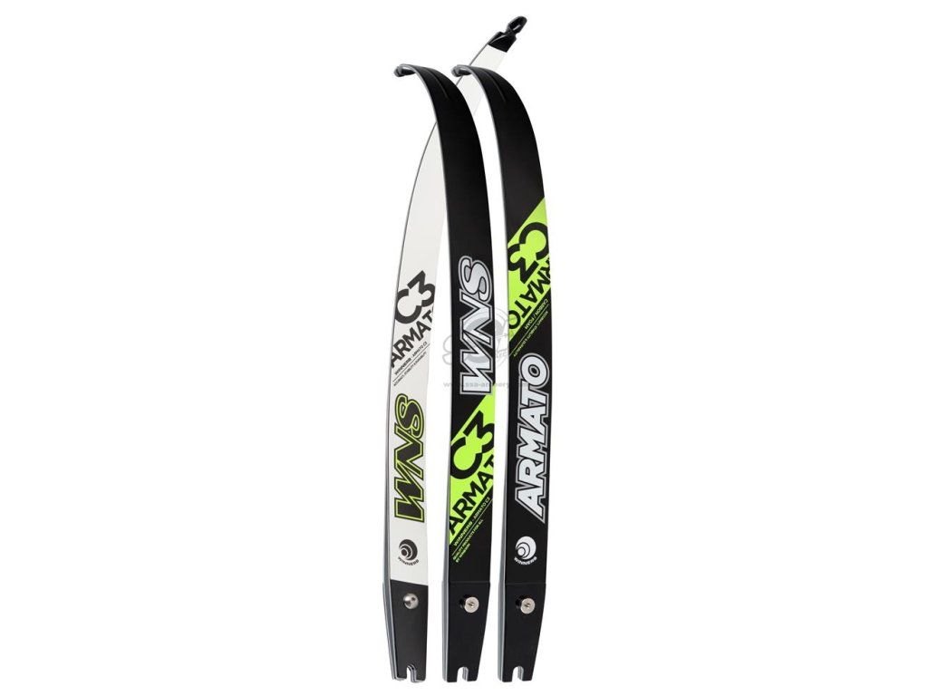 Ramená from the WNS Armato C3 carbon foam brand in black-white-green design. A favorable price-to-quality ratio, these ramená are suitable for competition, the carbon foam gives them softness for pull and release, and sizes: 66/68/70´´, strengths: 66-32 to 66/40, WNS Armato C3 carbon foam recurve limbs ILF