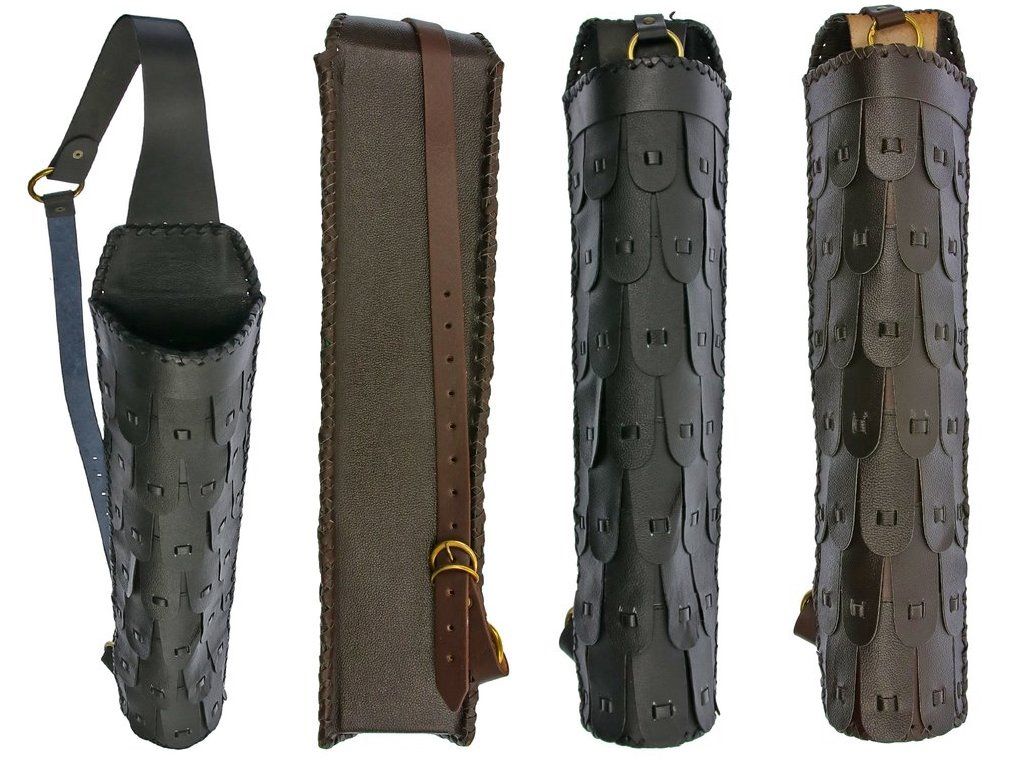Krásny kožený plátový chrbtový tulec na tradičnú lukostreľbu.