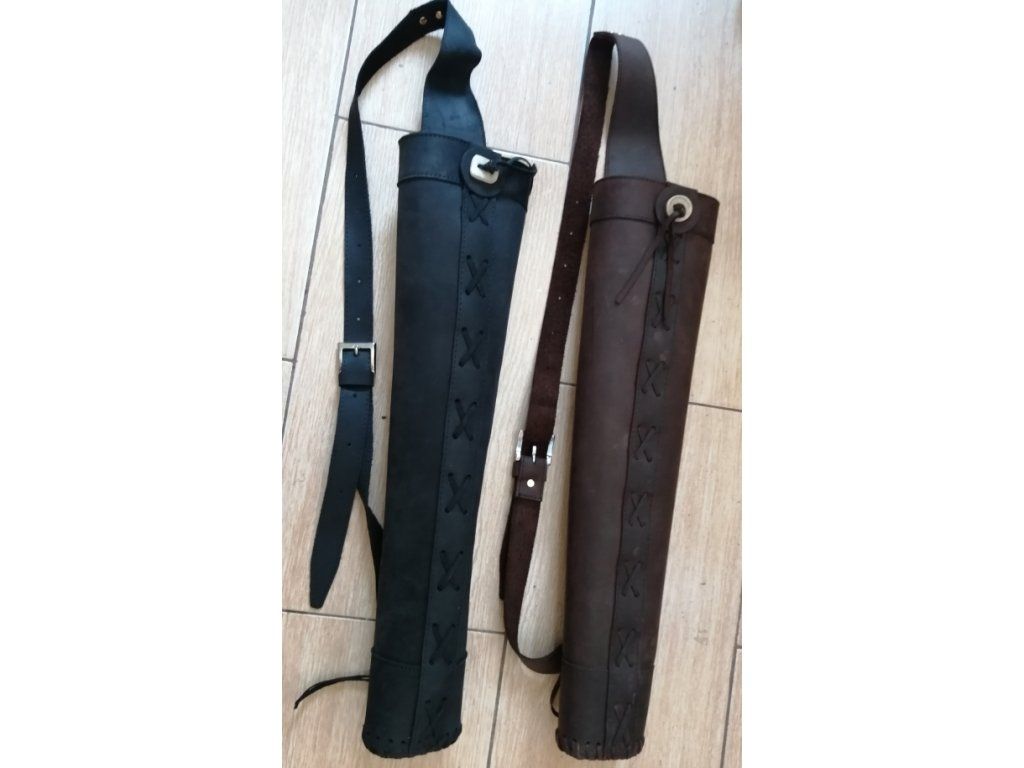 Tradičný kožený tulec na chrbát ručne robený s prešívkou čierny / hnedý (4243,42431)