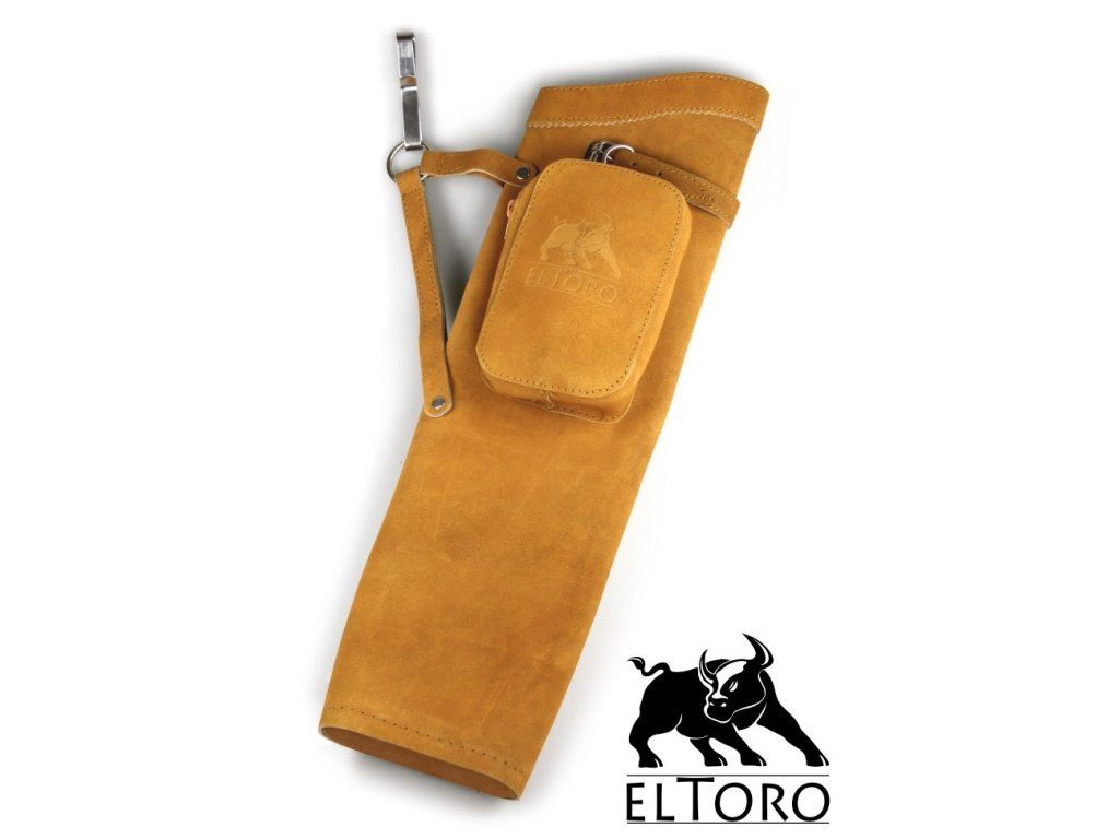 Tulec s nosením na boku na pracku svetlohnedej farby s púzdrom na príslušenstvo z kože divého zvieraťa.