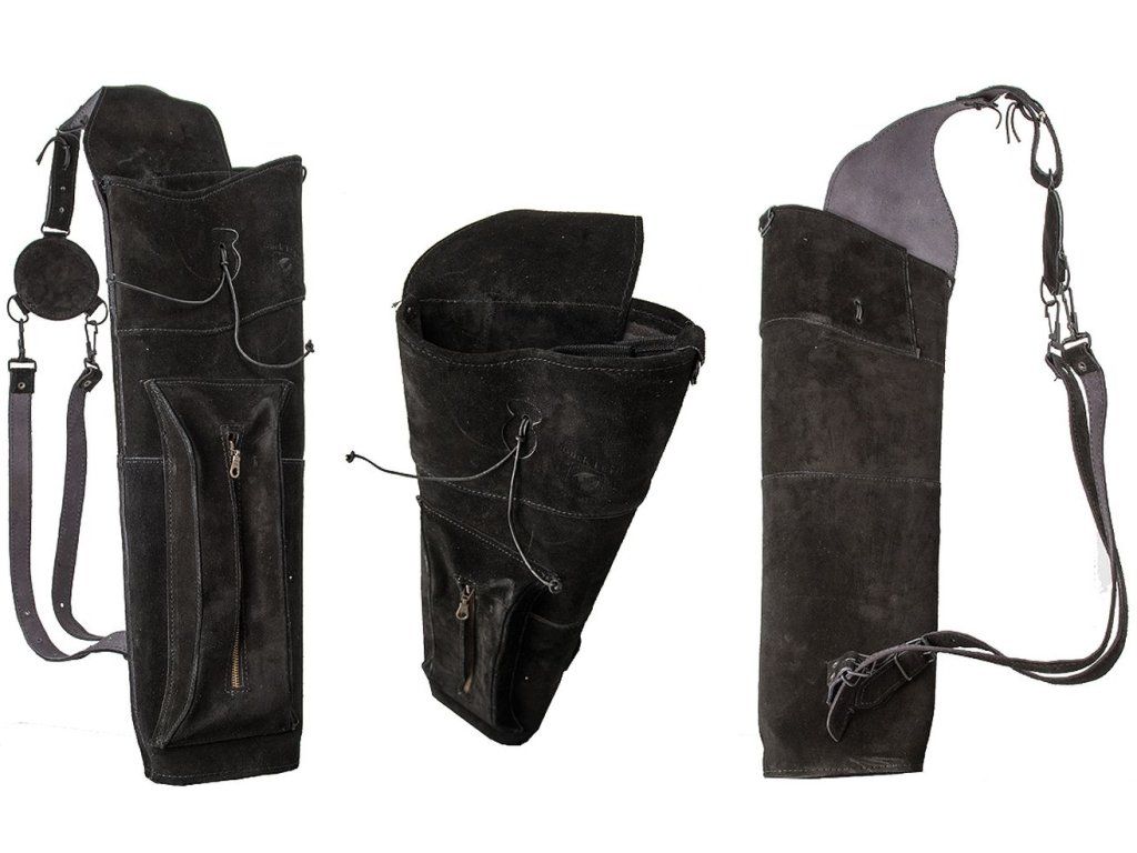 Chrbtový suede - náhrada kože tulec s dvoma popruhmi na pevné nosenie na chrte. Tulec má predné vrecko na odkladanie príslušenstva.