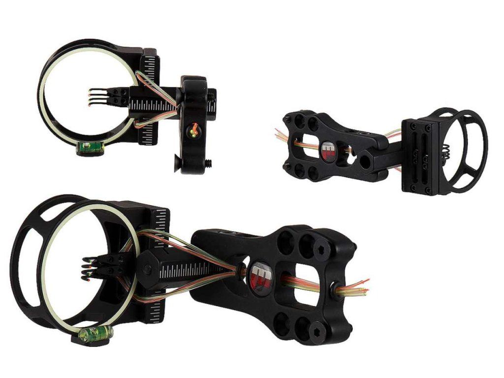 Lovecký zameriavač na kladkové luky so 4 pinmi a vodováhou a podsvietením s možnosťou dodatočnej inštalácie svetla. Dobrá ekomomická voľba pre začínajúcich strelcov.