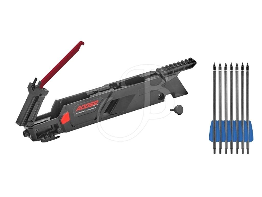 A magazine for the Cobra ADDER bow, as an additional magazine that can be quickly and easily swapped after firing the original bow magazine, thus increasing the rate of fire. It includes 7 carbon arrows, 7.5 inches in length.