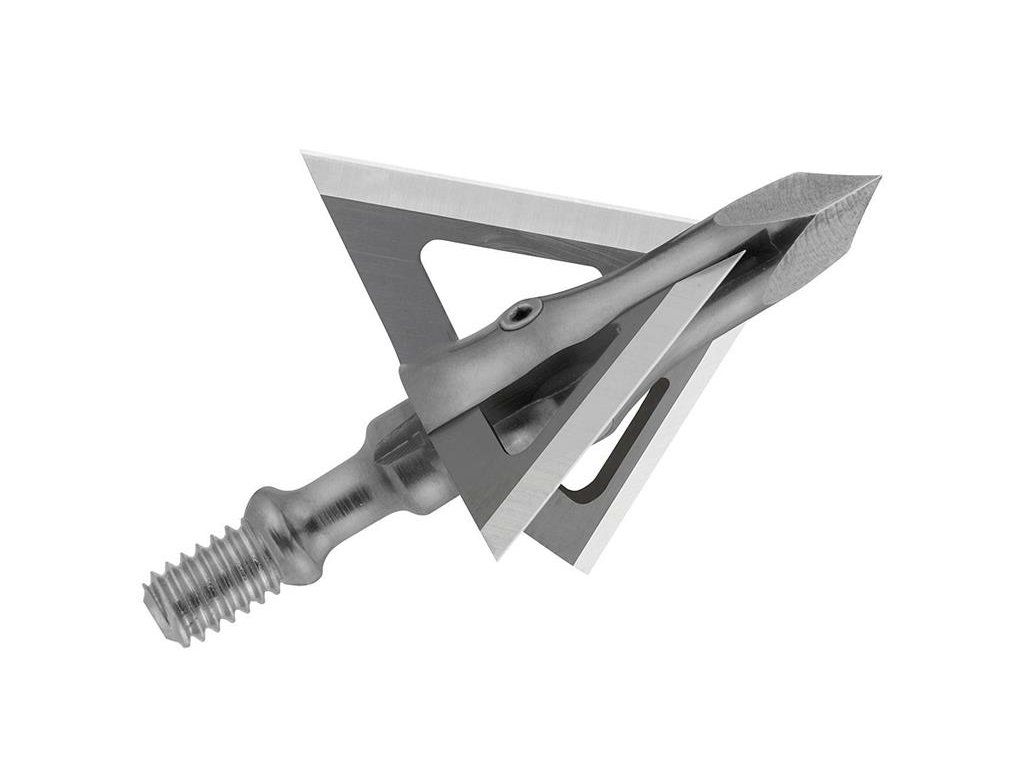 Lovecké hroty MUZZY Trocar STD 3 čepeľové 100/125 gn v balení po 3 ks. Helix čepele sú odsadené a nejdú z centra ale sú pecne pritiahnuté skrutkou k hlave hrotu, čo zvyšuje ich odolnosť. Veľmi presné lovecké htoty aj na dlhé vzdialenosti.