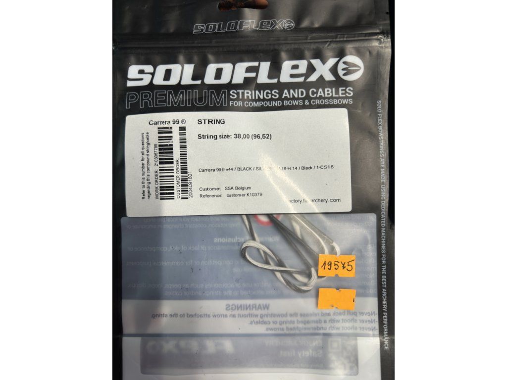 Tetiva na kladkový luk od Soloflex s dĺžkou 38´´ na rôzne kladkové luky, ktoré majú túto dĺžku tetív. Tetiva od soloflex používa vlákna, ktoré sú rovnako kvalitné ako púvodná tetiva na kladkový luk.