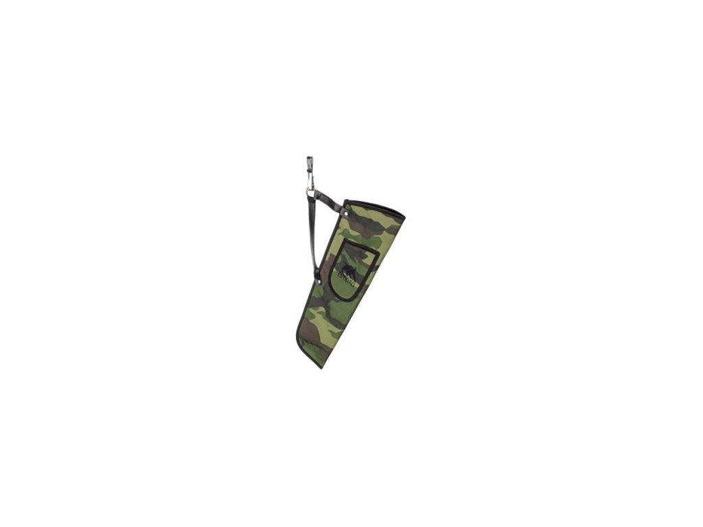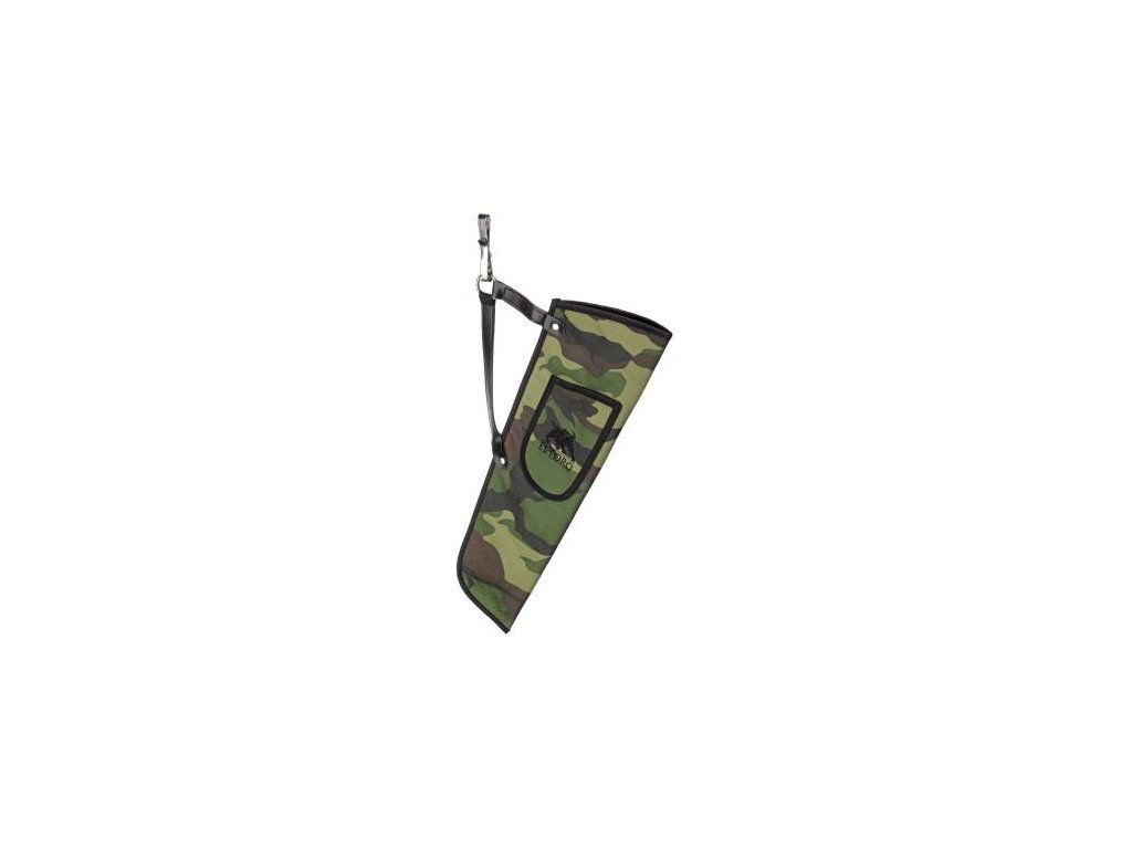 Jednoducý tulec na bok v camo farbe na zavesenie na pracku pre dospelých aj juniorov s malým bočným vreckom.